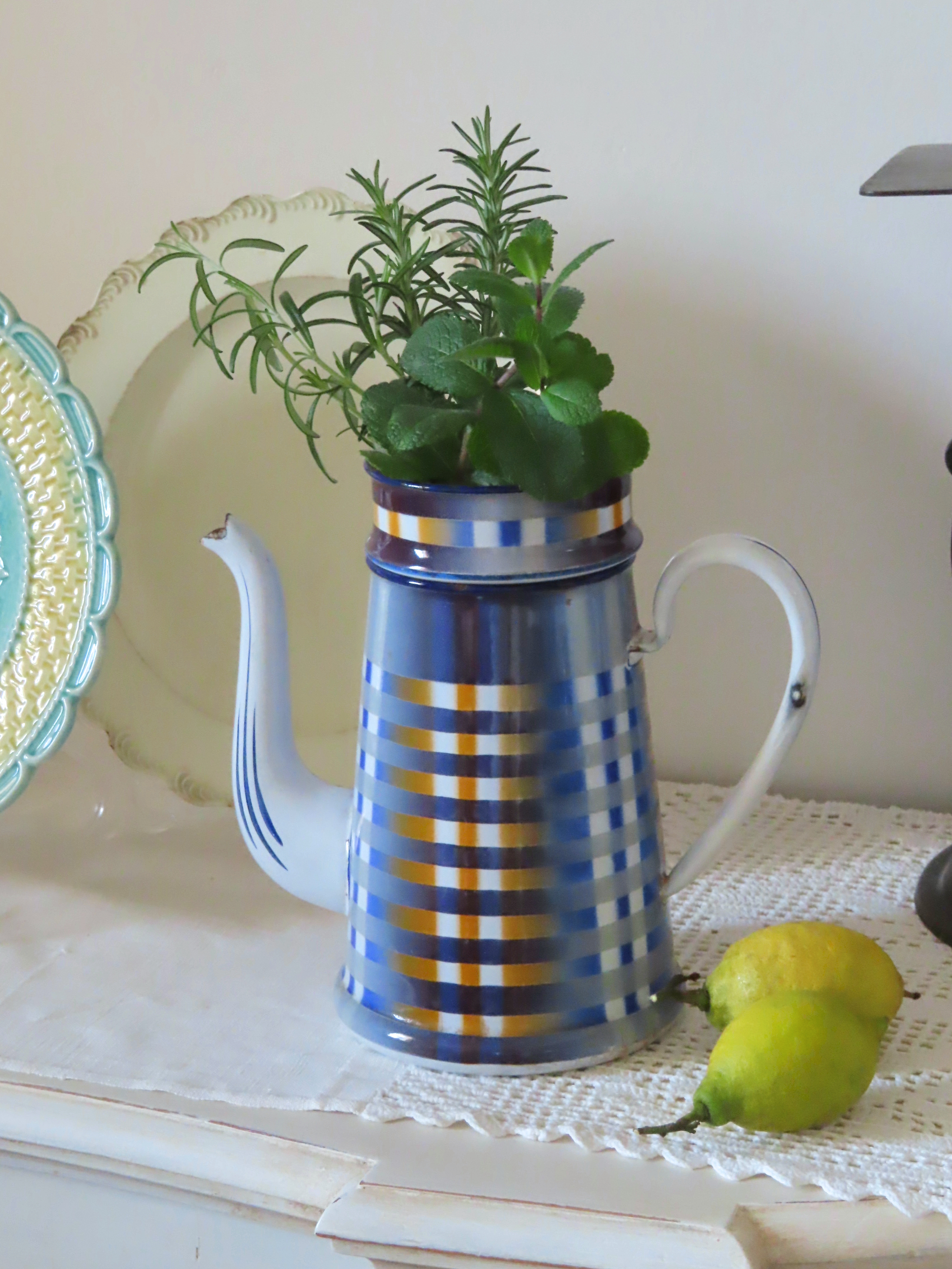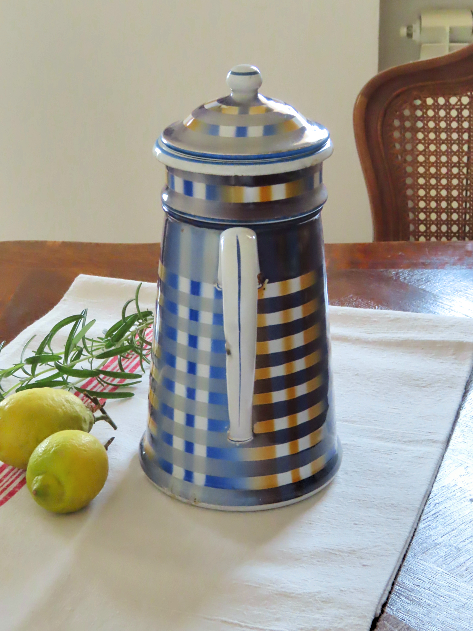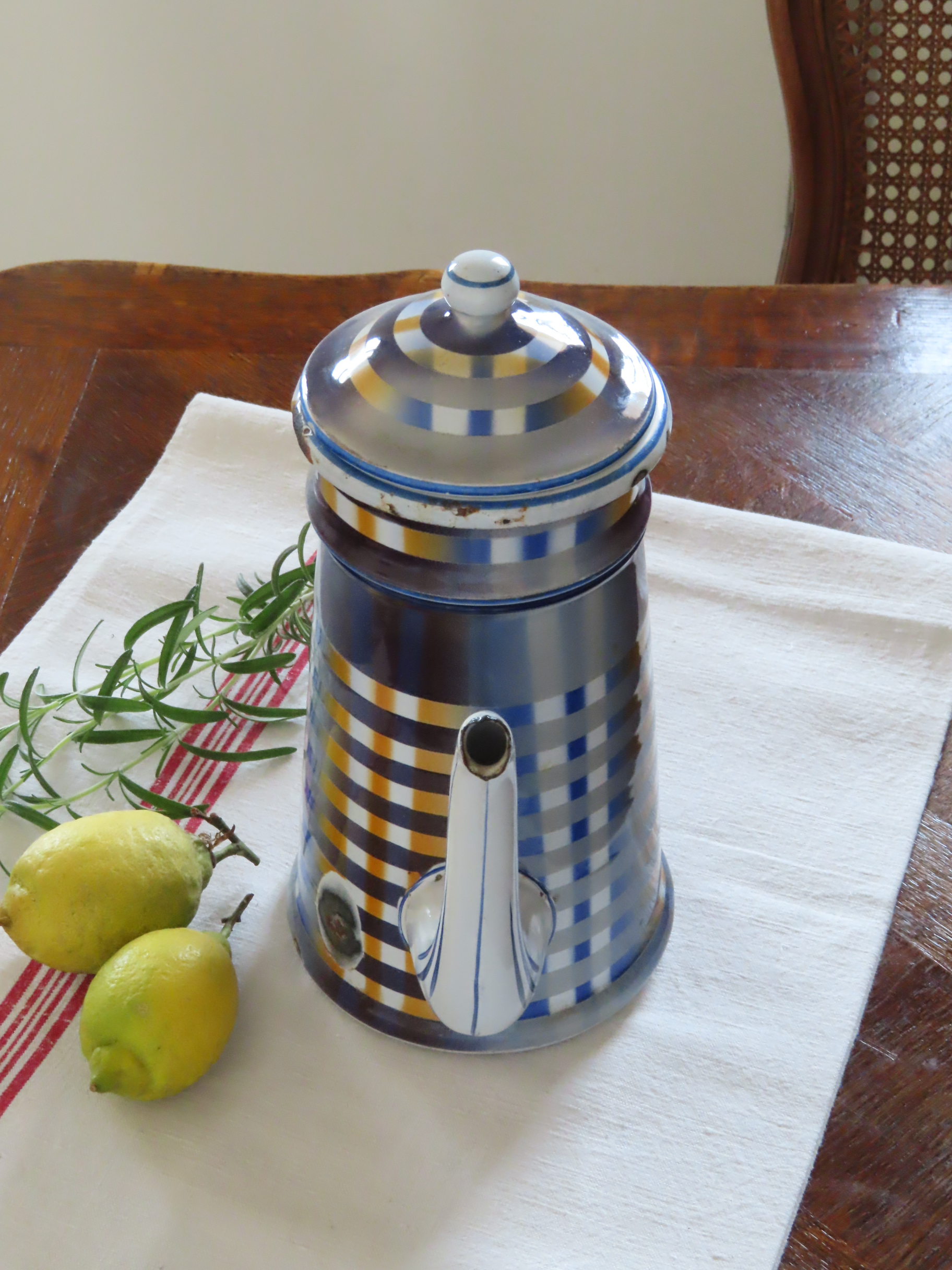 B&B社の、チェック柄エナメルコーヒーポットです。