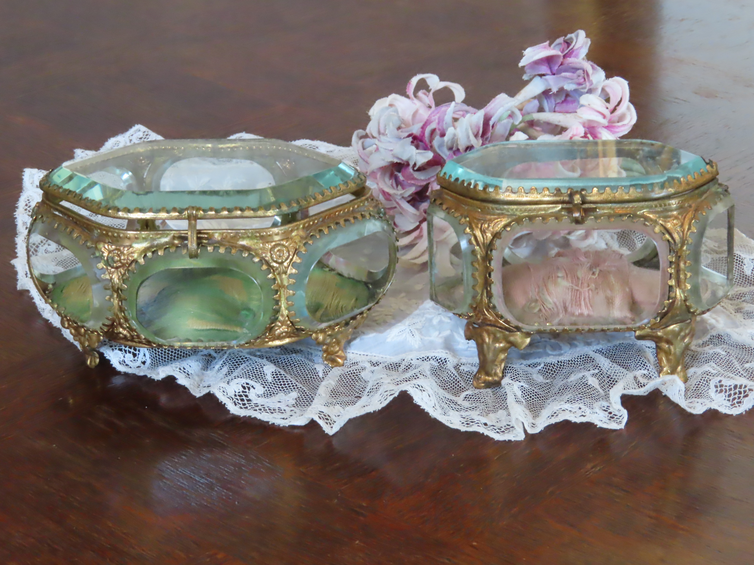 7面のガラス面のジュエリーボックスですが、メタル部分のお色が明るく、華やかです。