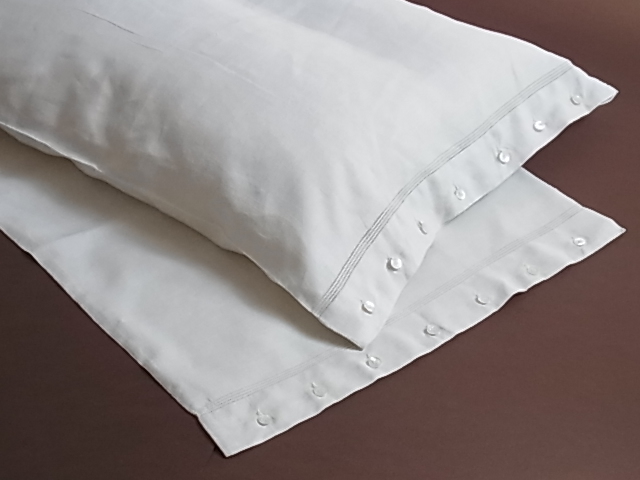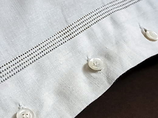 | シーツと同じスフィラート。艶やかなシェルボタンは、各7個。※カーソルを置くと、拡大写真がご覧になれます。 | ||||||||