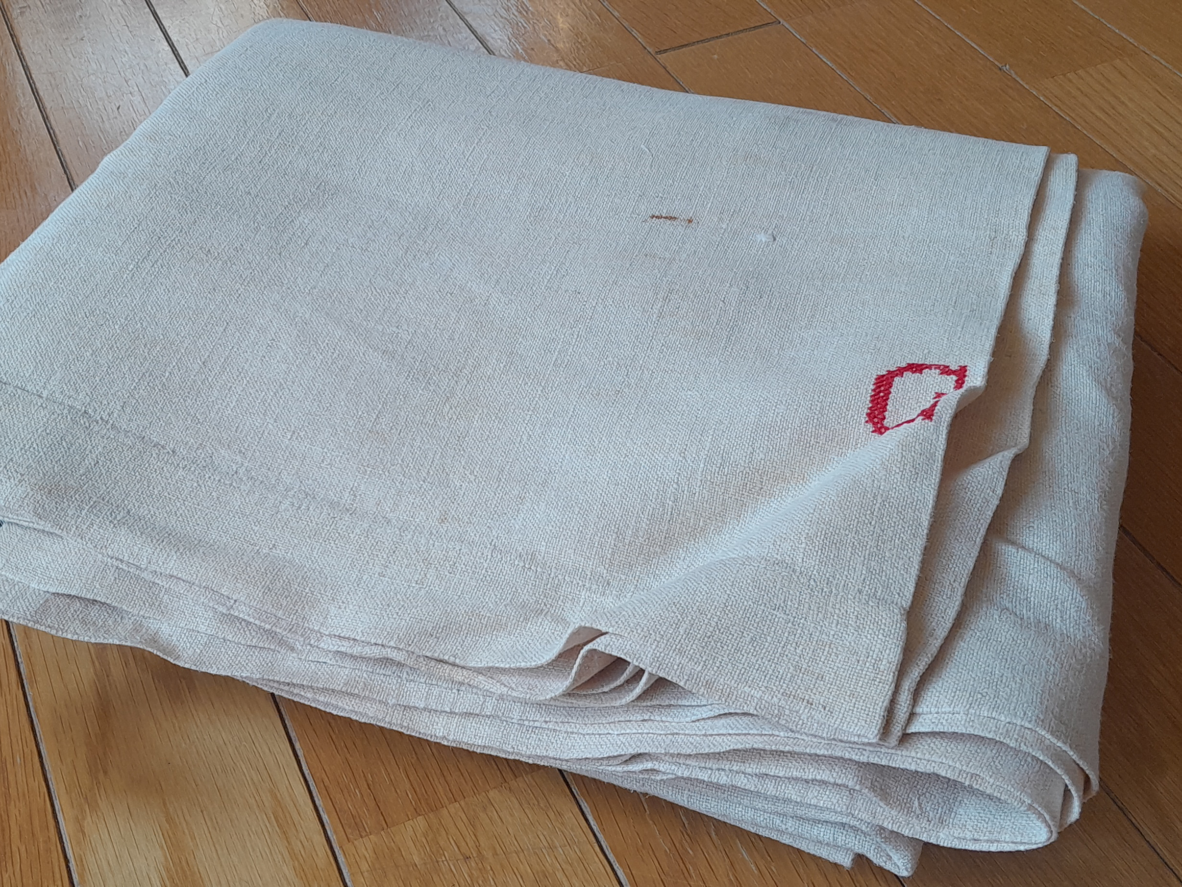 | L-865 | CL赤イニシャルのカナパリネン アンティークリネンWシーツ |