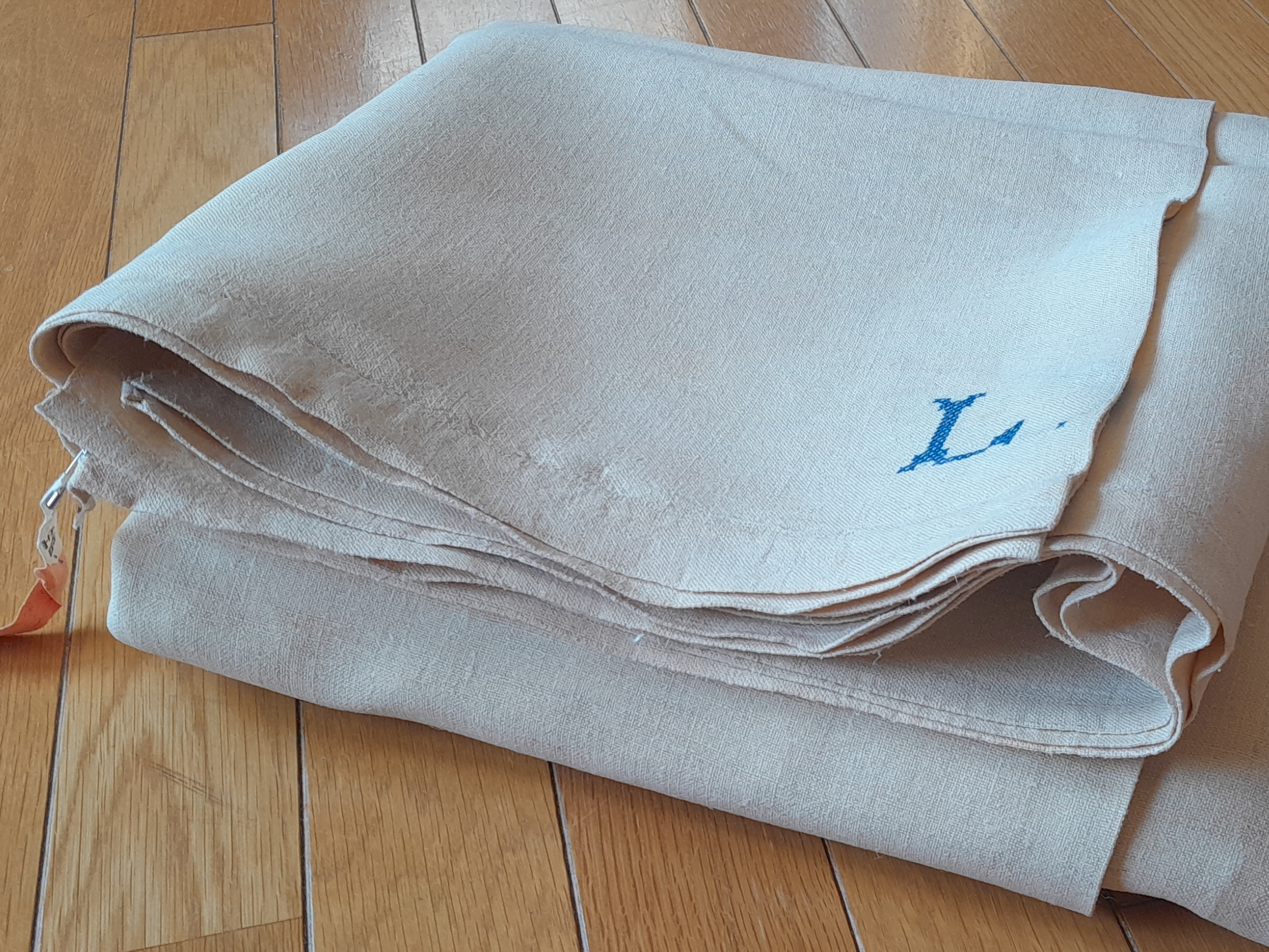 | L-866 | LC青イニシャルのカナパリネン アンティークリネンWシーツ |